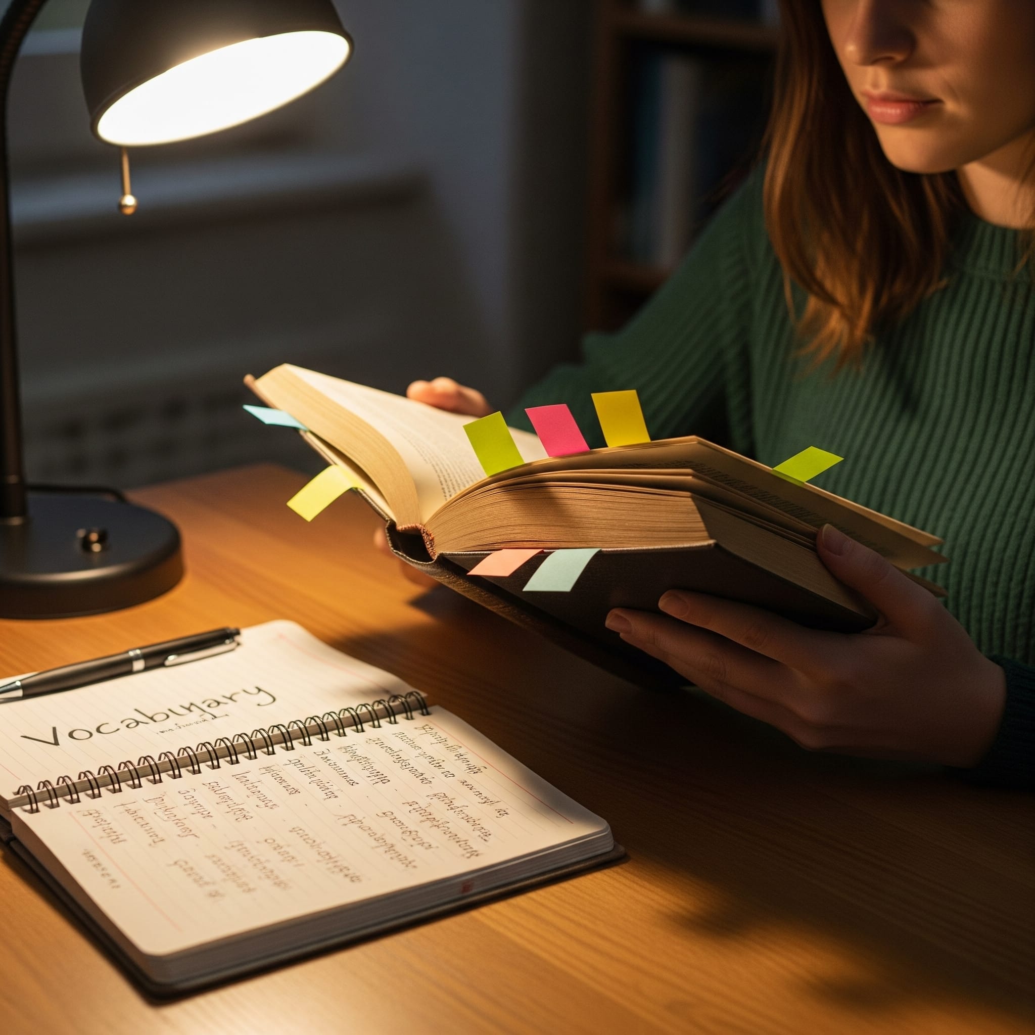 Pause when you see a new word, note it, and try using it later.